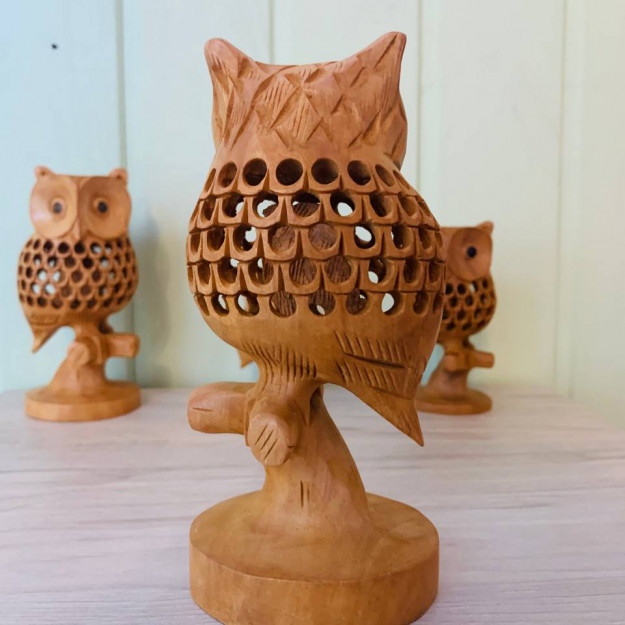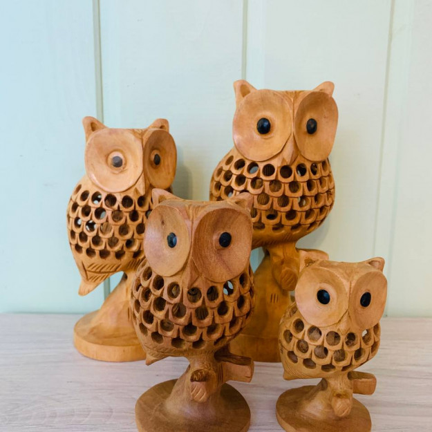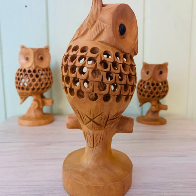 Погрузитесь в мир загадок и мудрости с этой уникальной деревянной фигуркой «Сова и совенок». Мастерски вырезанная из благородного дерева кадем, она изображает взрослую сову, в теле которой, благодаря ажурной резьбе, скрывается маленький совенок. Эта композиция — не просто изящный декор, а глубокий символ, говорящий о силе знаний, связи поколений и тайн, которые хранит природа.