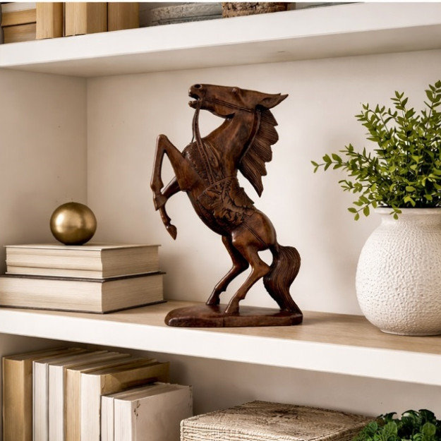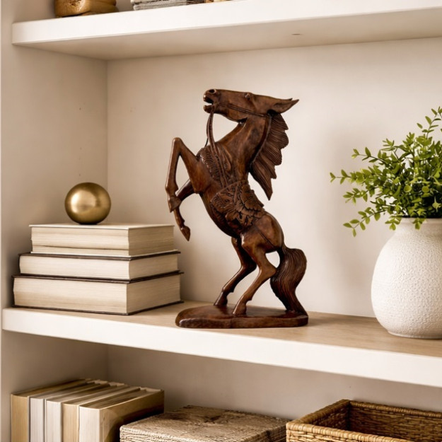 Остановите мгновение. Конь, взмывающий вверх, замер в элегантном прыжке, и в этой паузе — вся вселенная свободы, мощи и благородства. Статуэтка "Конь, ставший на дыбы" — это не просто фигура. Это характер, созданный из натурального дерева суар руками мастера.