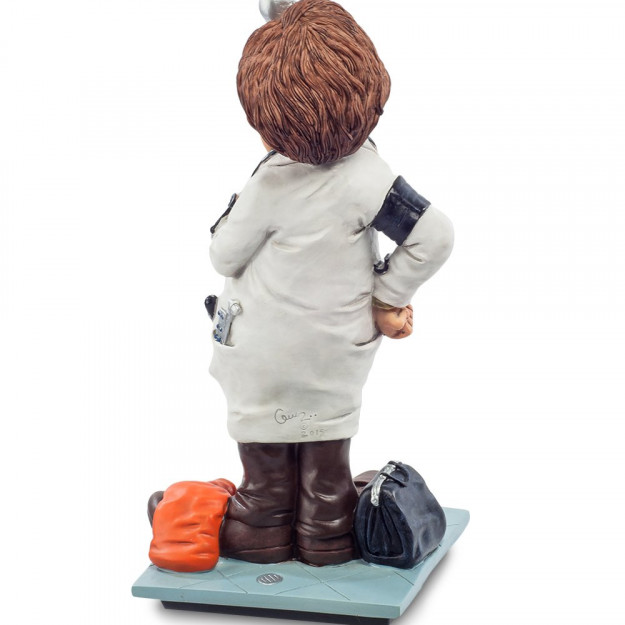 Фигурка врача посвящена представителям самой нужной и, пожалуй, самой сложной профессии в мире. Героем этой композиции является мудрый доктор, который немного устал от не всегда обоснованных жалоб пациентов, но, тем не менее, готов и днем и ночью бороться за спасение человеческих жизней. Врач, одетый в белоснежный медицинский халат, всегда носит с собой рабочие атрибуты – грелку, градусник, тонометр, стетоскоп и оториноларингологический рефлектор. Встретив на своем пути такого доктора, можете не сомневаться, он не отпустит вас, пока полностью не вылечит. Шуточная статуэтка «Врач» станет замечательным подарком к международному дню медицинских работников. Но также это изделие понравится всем, кто ценит красивые оригинальные вещи.